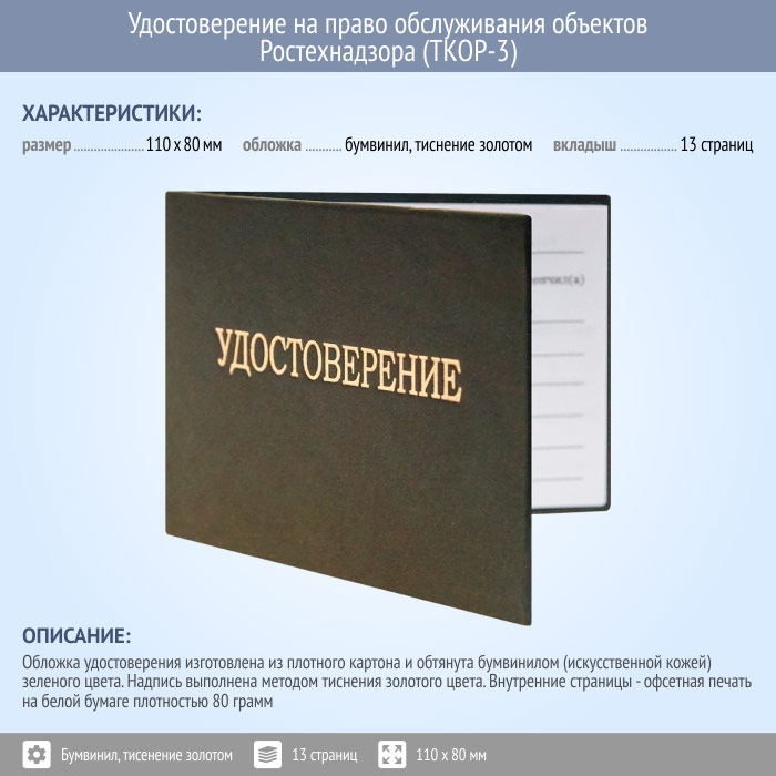 Бланк удостоверения на право обслуживания объектов Ростехнадзора (ТКОР-3) в Волгограде купить