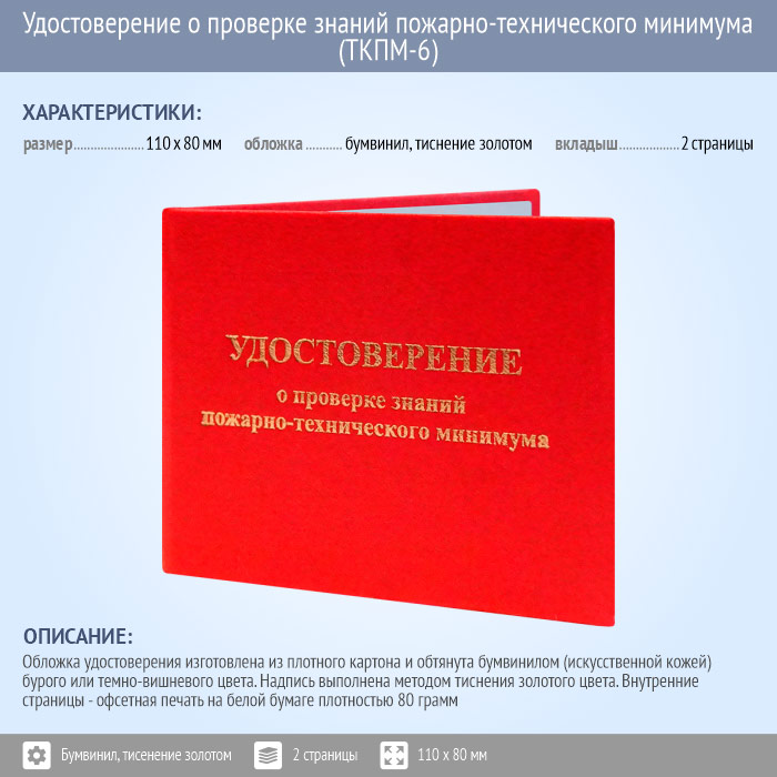 Бланк удостоверения о проверке знаний пожарно-технического минимума (ТКПМ-6) в Волгограде купить