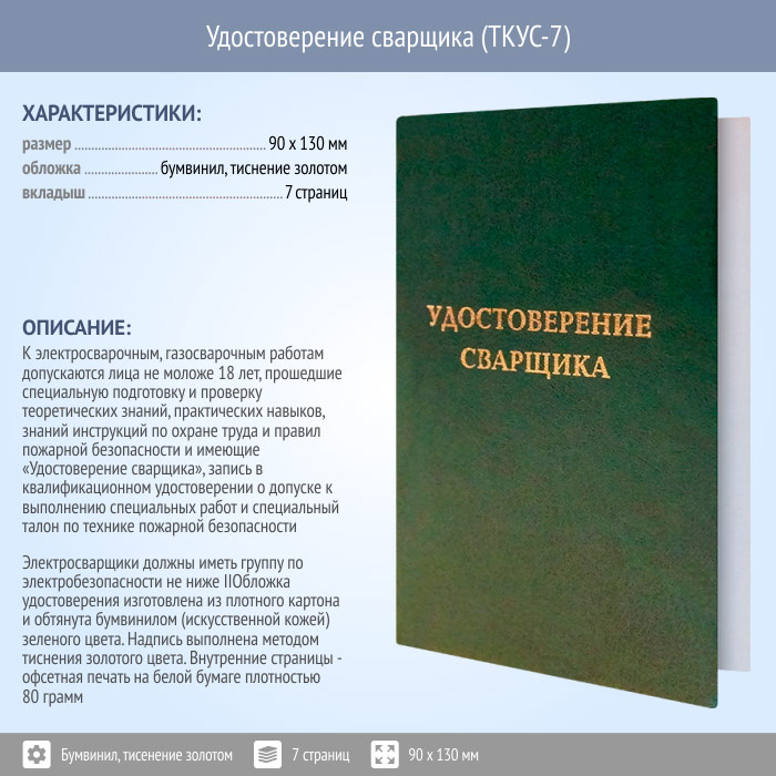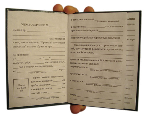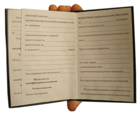 Бланк удостоверения сварщика (ТКУС-7) в Волгограде купить