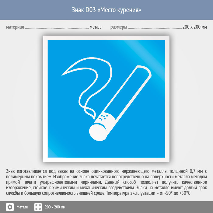 Знак D03 «Место курения» (металл, 200х200 мм) в Волгограде купить