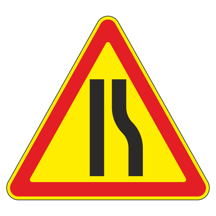 Дорожный знак 1.20.2 «Сужение дороги» (временный) (металл 0,8 мм, I типоразмер: сторона 700 мм, С/О пленка: тип В алмазная) в Волгограде купить