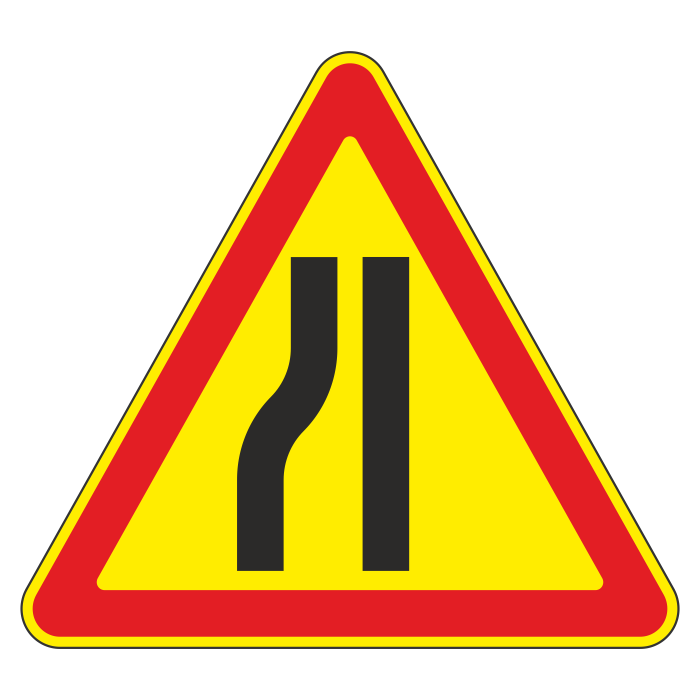 Дорожный знак 1.20.3 «Сужение дороги» (временный) (металл 0,8 мм, I типоразмер: сторона 700 мм, С/О пленка: тип В алмазная) в Волгограде купить