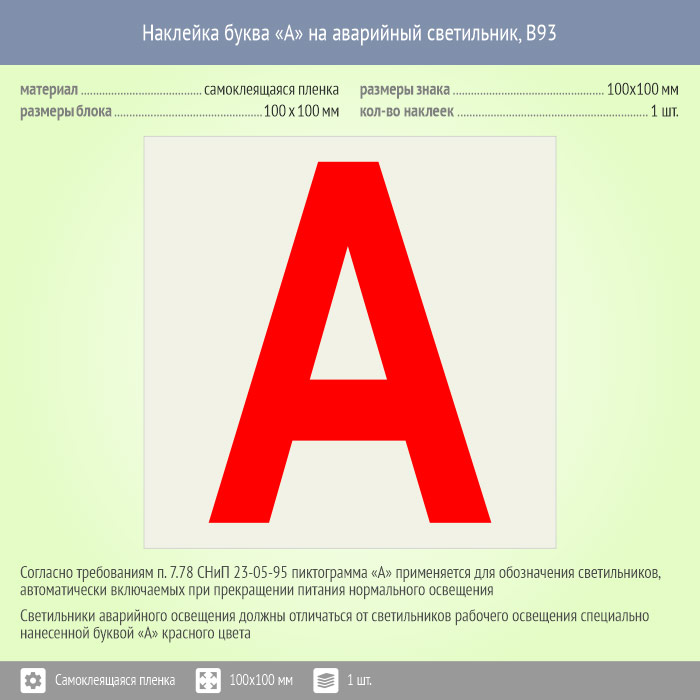 Наклейка буква «А» на аварийный светильник, B93 (пленка, 100х100 мм) в Волгограде купить