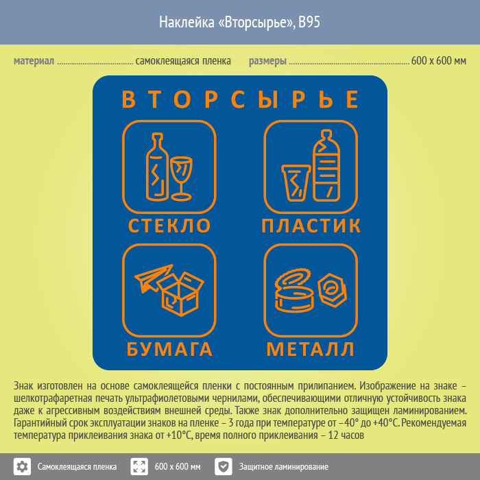 Наклейка на бак «Вторсырьё», B95 (пленка c ламинированием, 600х600 мм) в Волгограде купить