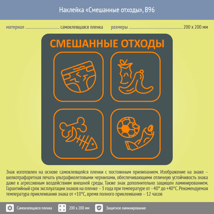 Наклейка на бак «Смешанные отходы», B96 (пленка c ламинированием, 200х200 мм) в Волгограде купить