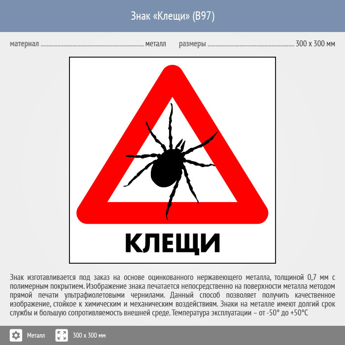 Знак «Клещи», B97 (металл, 200х200 мм) в Волгограде купить
