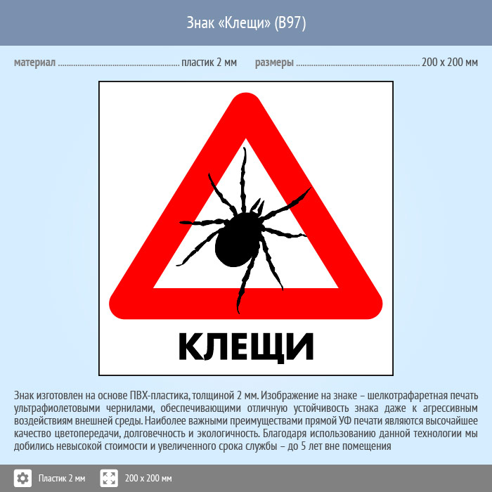 Знак «Клещи», B97 (пластик, 300х300 мм) в Волгограде купить