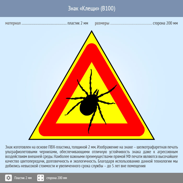 Знак «Опасно! Клещи», B100 (пластик, сторона 300 мм) в Волгограде купить