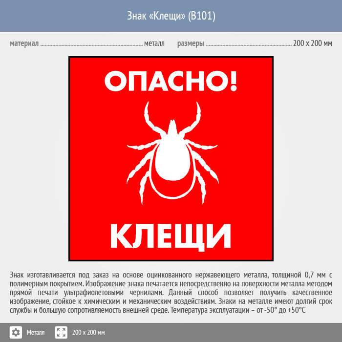 Знак «Опасно! Клещи», B101 (металл, 200х200 мм) в Волгограде купить