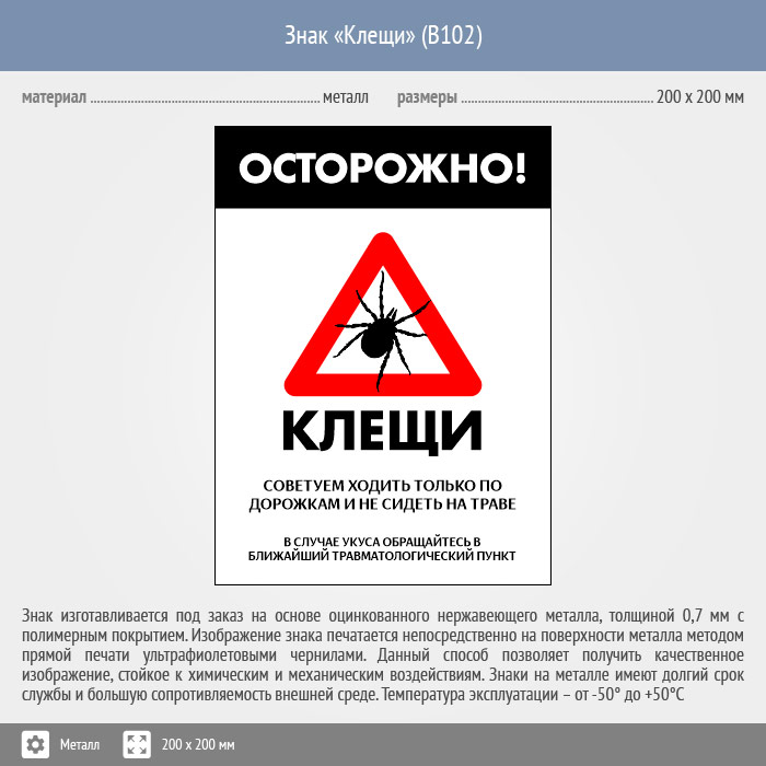 Знак «Осторожно! Клещи», B102 (металл, 400х600 мм) в Волгограде купить