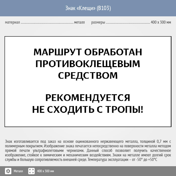 Знак «Клещи», B103 (металл, 300х200 мм) в Волгограде купить