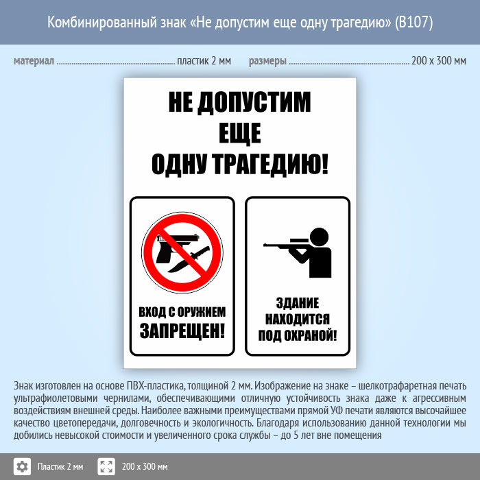 Комбинированный знак «Не допустим еще одну трагедию», B107 (пластик, 200х300 мм) в Волгограде купить