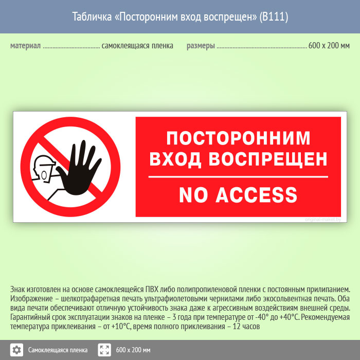 Табличка «Посторонним вход воспрещен», B111 (пленка, 600х200 мм) в Волгограде купить