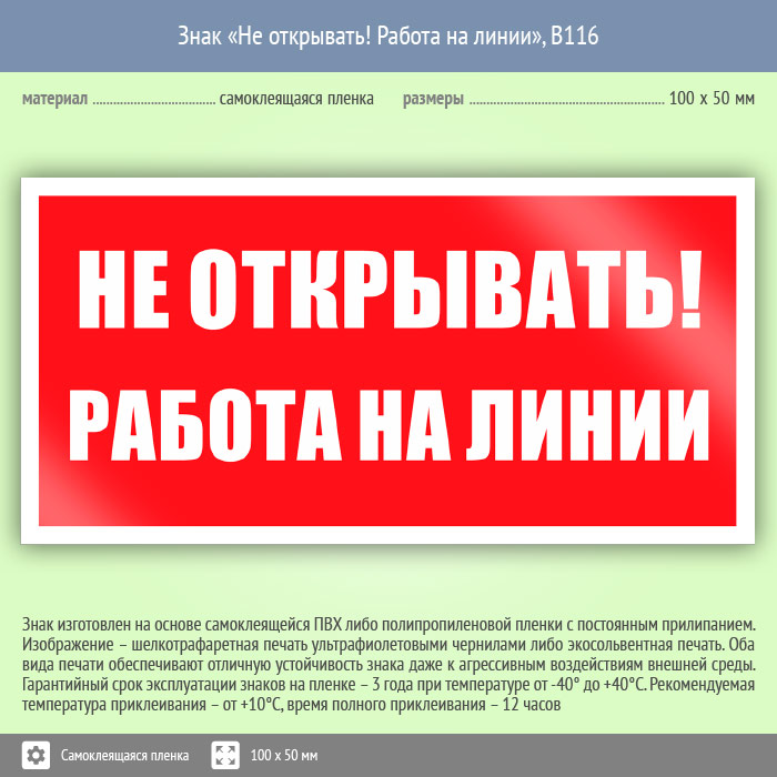 Знак «Не открывать! Работа на линии», B116 (пленка, 100х50 мм) в Волгограде купить