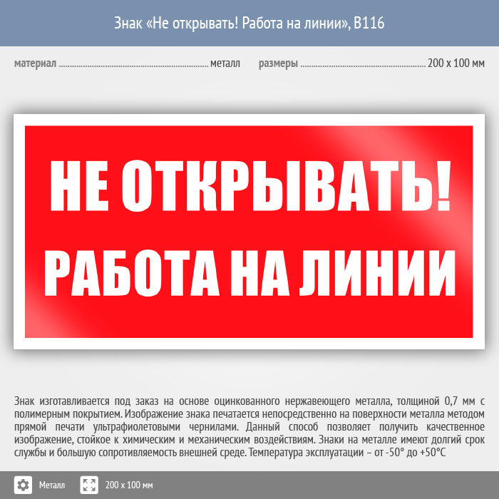 Знак «Не открывать! Работа на линии», B116 (металл, 200х100 мм) в Волгограде купить