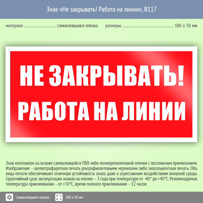 Знак «Не закрывать! Работа на линии», B117 (пленка, 100х50 мм) в Волгограде купить
