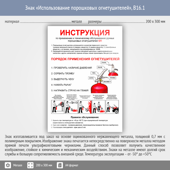 Знак «Использование порошковых огнетушителей», B16.1 (металл, 200х300 мм) в Волгограде купить