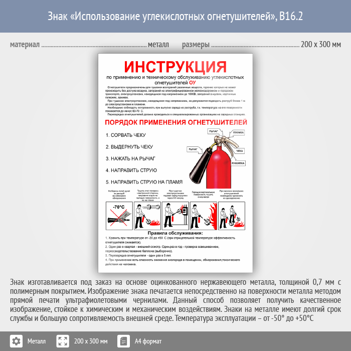 Знак «Использование углекислотных огнетушителей», B16.2 (металл, 200х300 мм) в Волгограде купить
