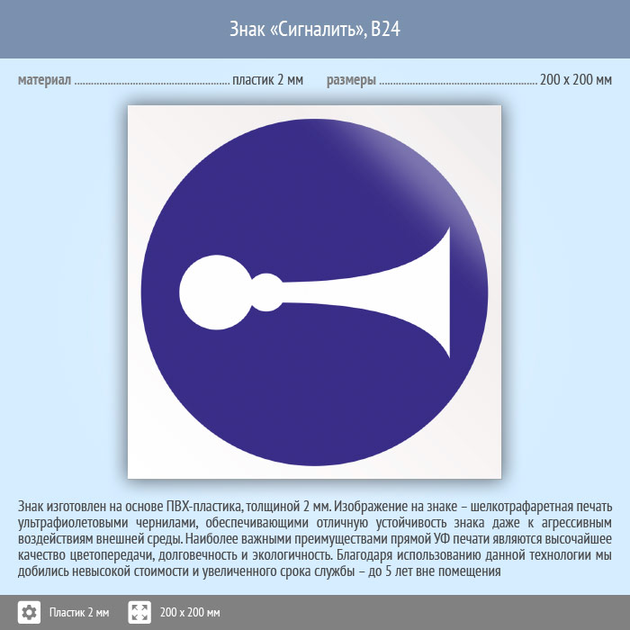 Знак «Сигналить», B24 (пластик, 200х200 мм) в Волгограде купить