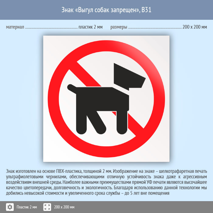 Знак «Выгул собак запрещен», B31 (пластик, 200х200 мм) в Волгограде купить