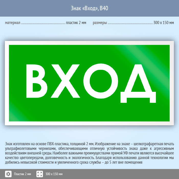 Знак «Вход», B40 (пластик, 300х150 мм) в Волгограде купить