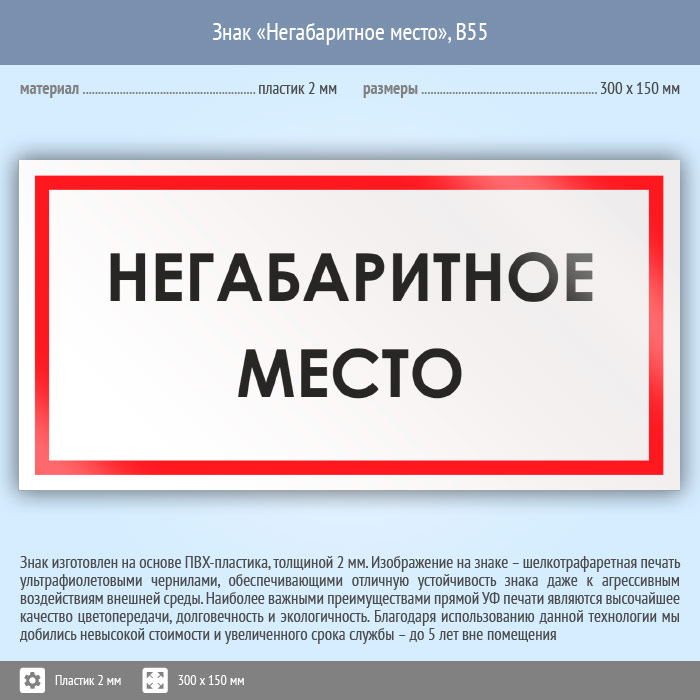 Знак «Негабаритное место», B55 (пластик, 300х150 мм) в Волгограде купить
