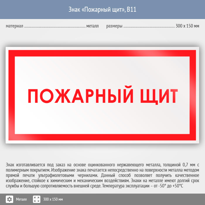 Знак «Пожарный щит», B11 (металл, 300х150 мм) в Волгограде купить