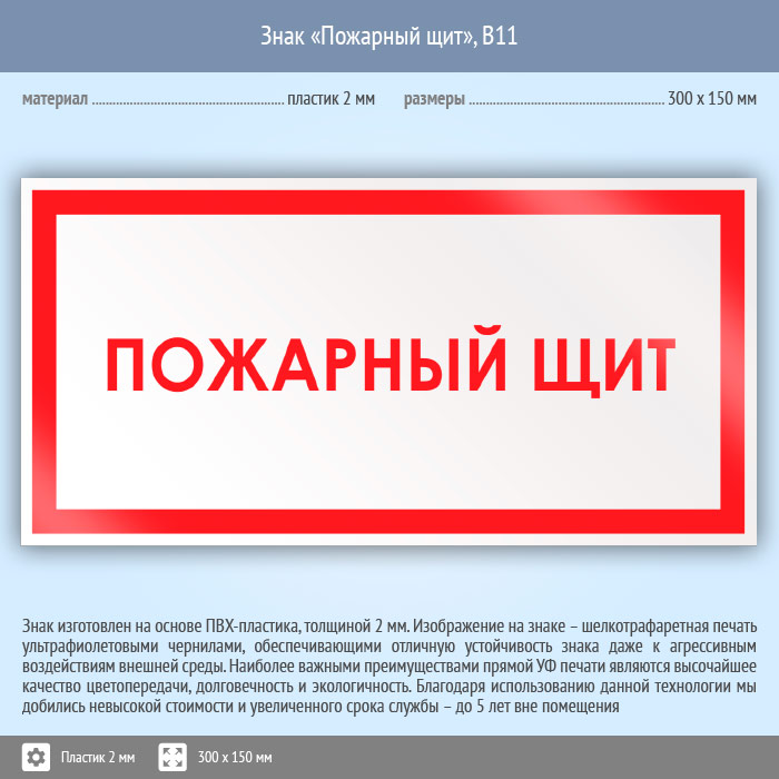 Знак «Пожарный щит», B11 (пластик, 300х150 мм) в Волгограде купить