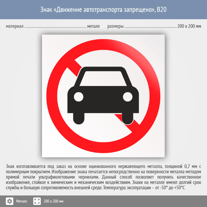 Знак «Движение автотранспорта запрещено», B20 (металл, 200х200 мм) в Волгограде купить
