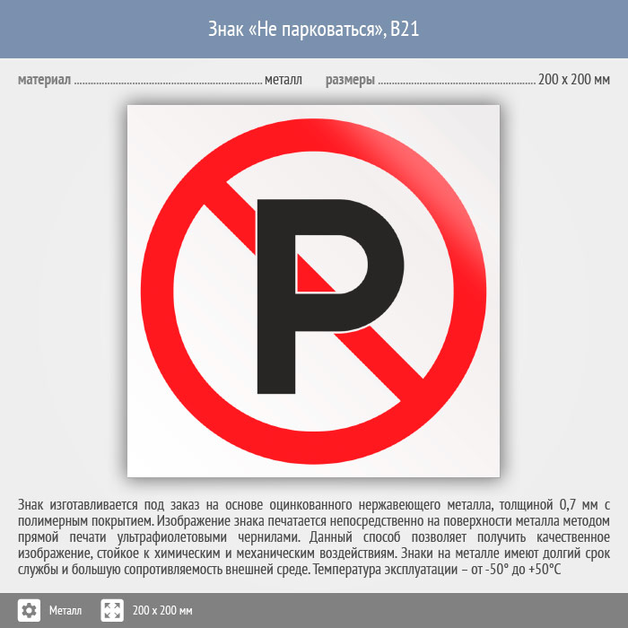 Знак «Не парковаться», B21 (металл, 200х200 мм) в Волгограде купить