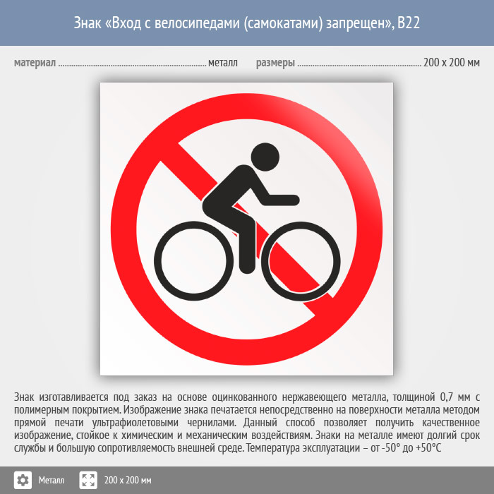 Знак «Вход с велосипедами (самокатами) запрещен», B22 (металл, 200х200 мм) в Волгограде купить