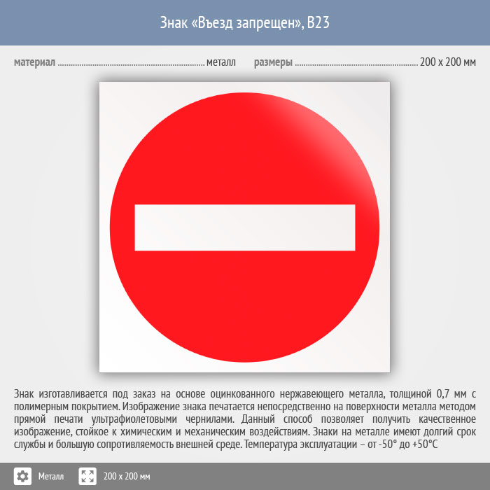 Знак «Въезд запрещен», B23 (металл, 200х200 мм) в Волгограде купить