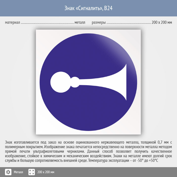 Знак «Сигналить», B24 (металл, 200х200 мм) в Волгограде купить