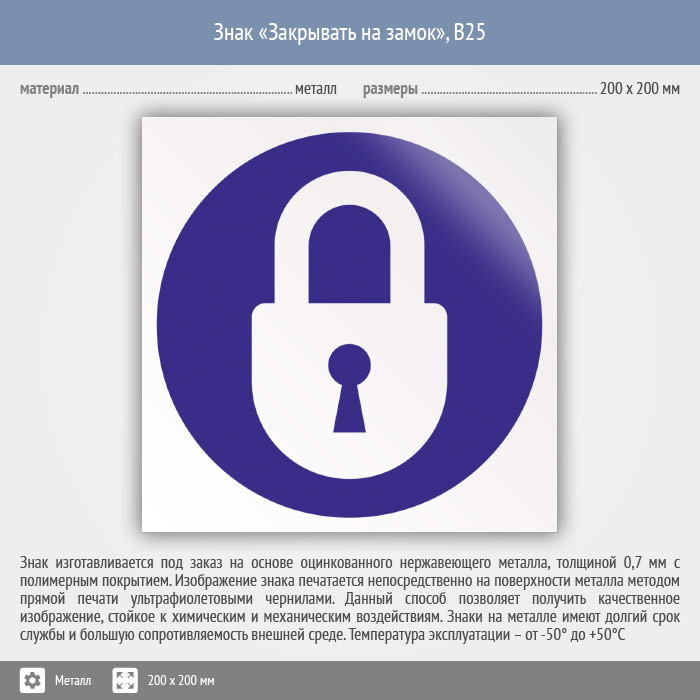 Знак «Закрывать на замок», B25 (металл, 200х200 мм) в Волгограде купить