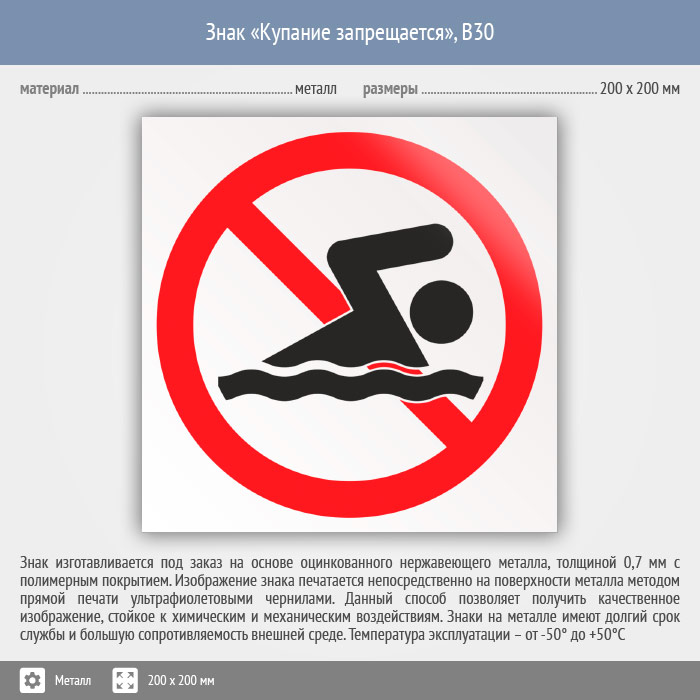 Знак «Купание запрещено», B30 (металл, 200х200 мм) в Волгограде купить