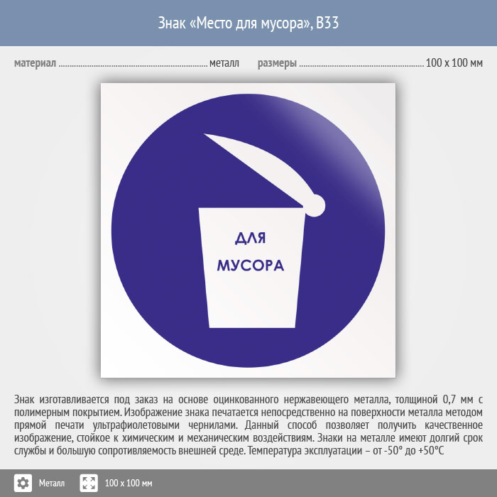 Знак «Место для мусора», B33 (металл, 100х100 мм) в Волгограде купить