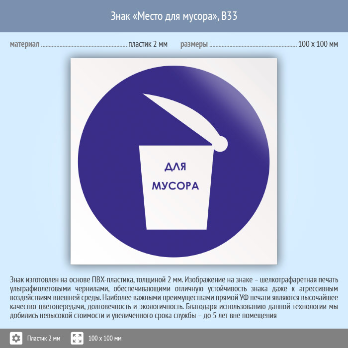 Знак «Место для мусора», B33 (пластик, 100х100 мм) в Волгограде купить