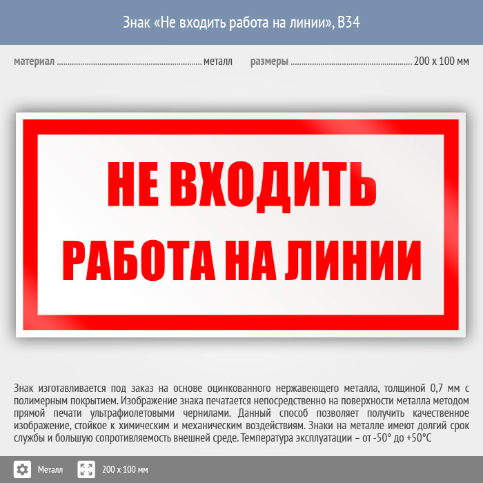 Знак «Не входить работа на линии», B34 (металл, 200х100 мм) в Волгограде купить