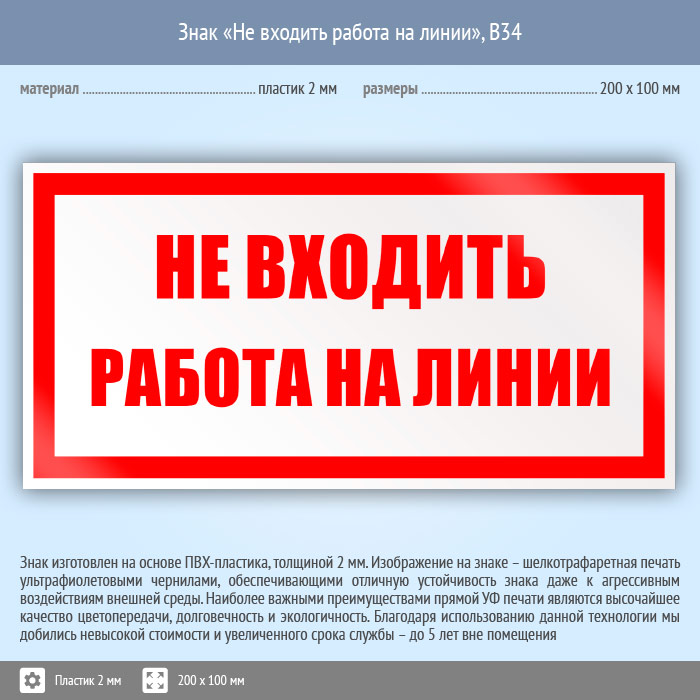 Знак «Не входить работа на линии», B34 (пластик, 200х100 мм) в Волгограде купить