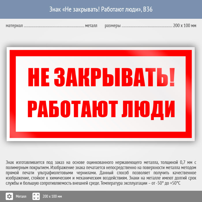 Знак «Не закрывать! Работают люди», B36 (металл, 200х100 мм) в Волгограде купить