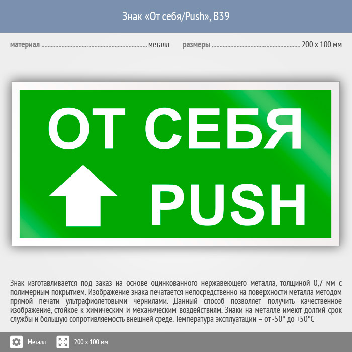 Знак «От себя/Push», B39 (металл, 200х100 мм) в Волгограде купить