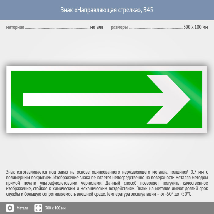 Знак «Направляющая стрелка», B45 (металл, 300х100 мм) в Волгограде купить