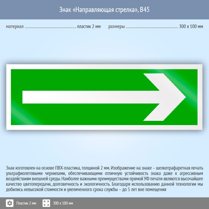 Знак «Направляющая стрелка», B45 (пластик, 300х100 мм) в Волгограде купить