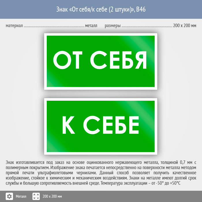 Знак «От себя/к себе», B46 (2 штуки, металл, 200х100 мм) в Волгограде купить