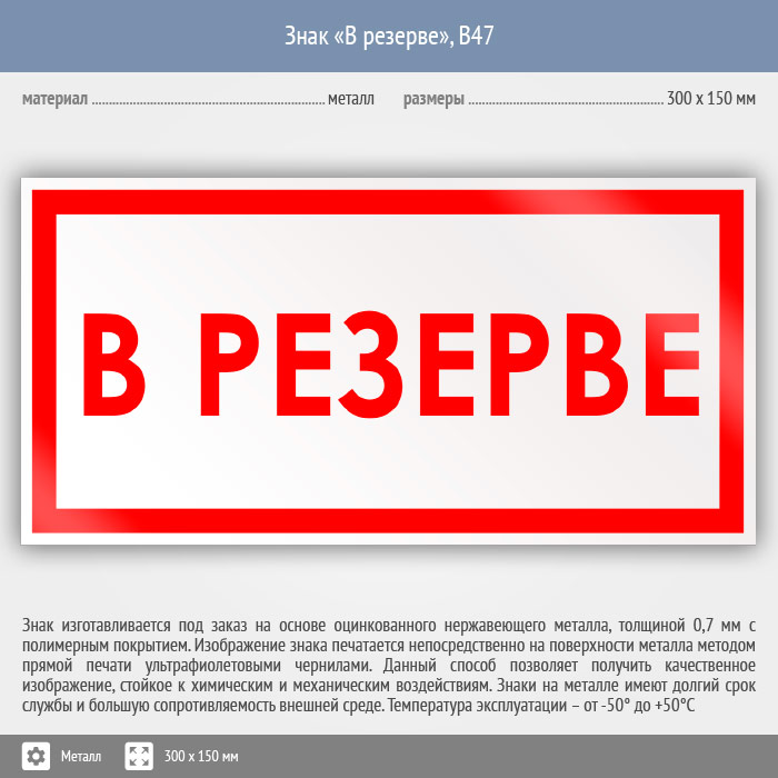 Знак «В резерве», B47 (металл, 300х150 мм) в Волгограде купить