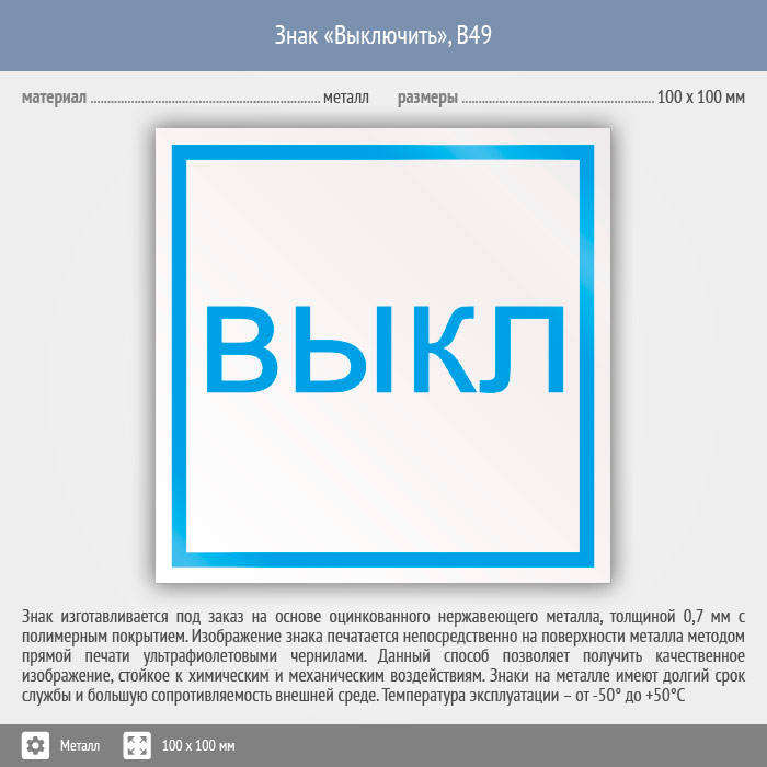 Знак «Выключить», B49 (металл, 100х100 мм) в Волгограде купить