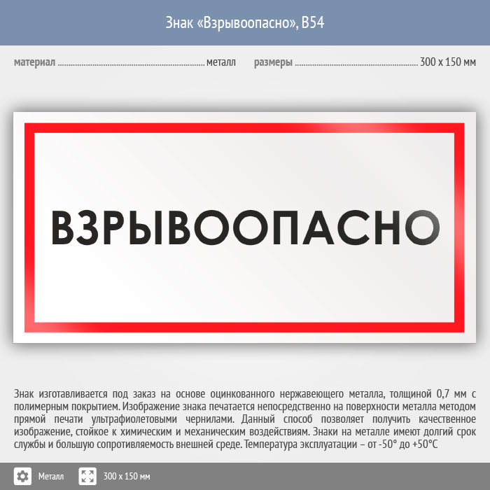 Знак «Взрывоопасно», B54 (металл, 300х150 мм) в Волгограде купить