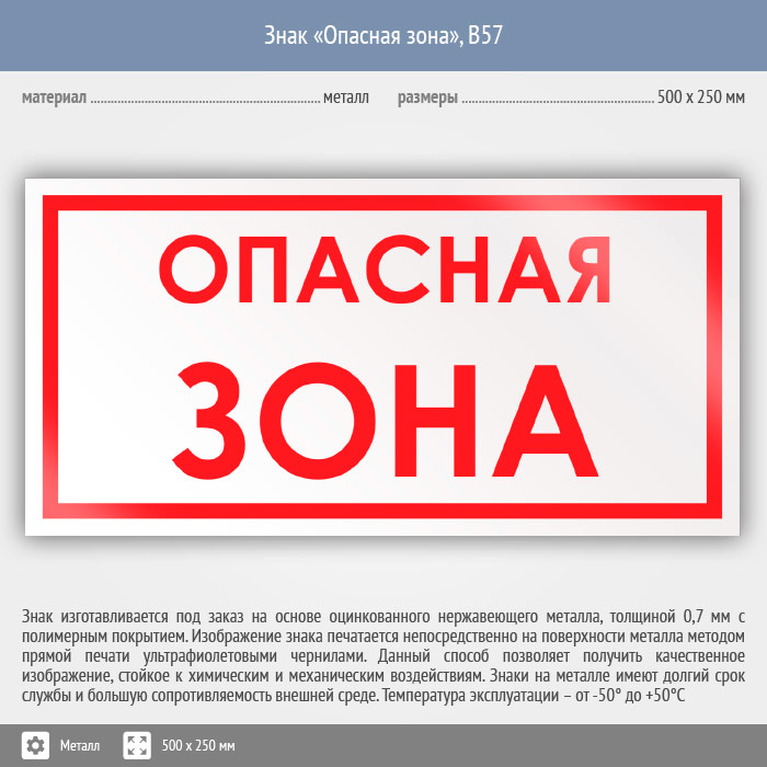 Знак «Опасная зона», B57 (металл, 500х250 мм) в Волгограде купить