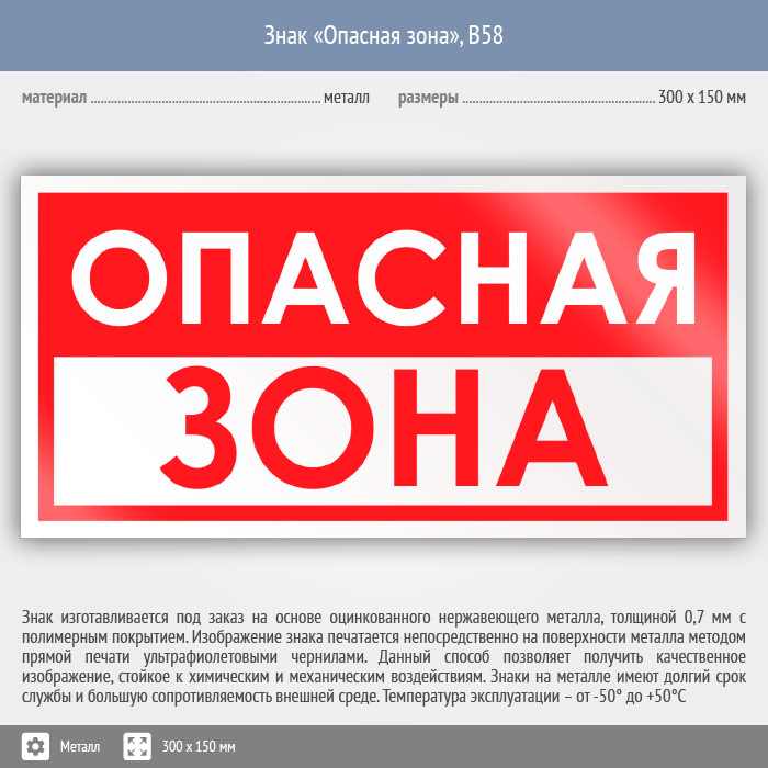 Знак «Опасная зона», B58 (металл, 300х150 мм) в Волгограде купить