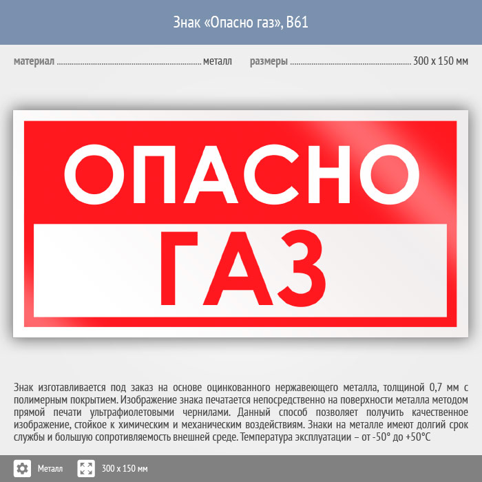 Знак «Опасно газ», B61 (металл, 300х150 мм) в Волгограде купить